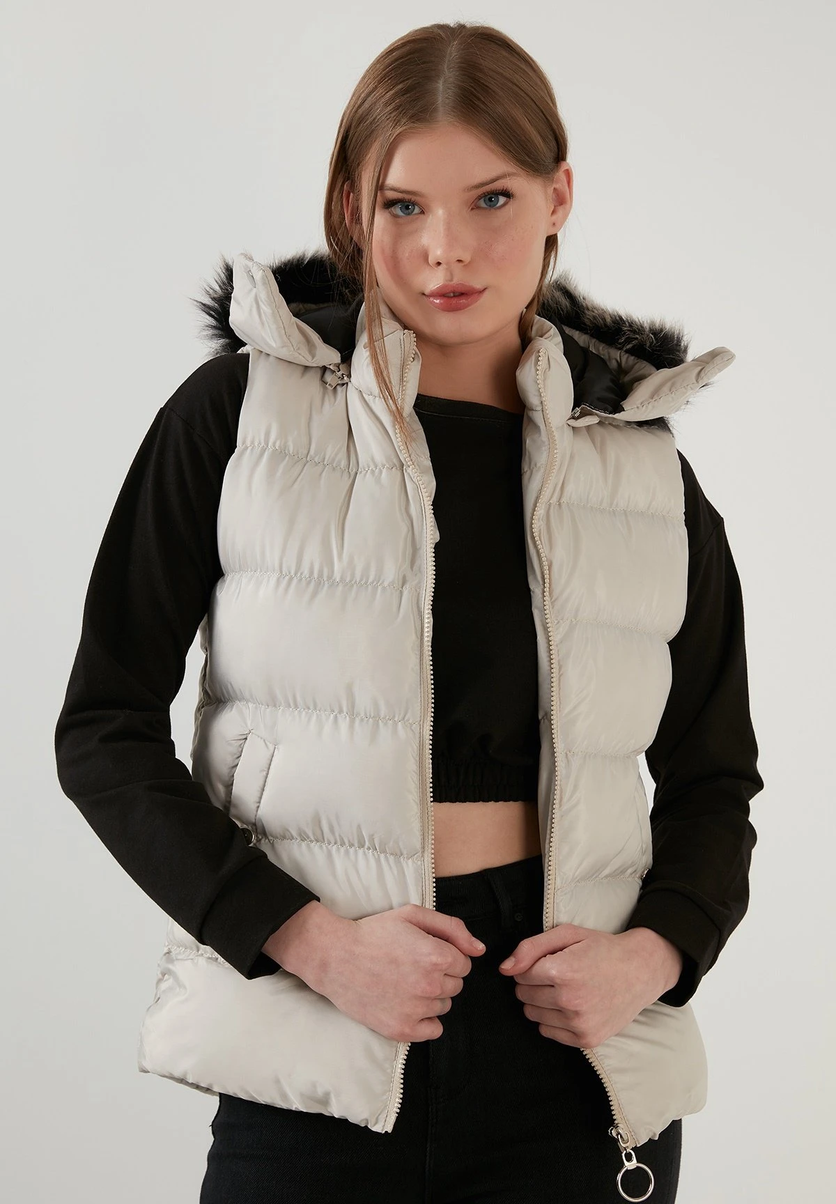 | Detalle capucha | Forrada, Capucha desmontable de pelo sintético |